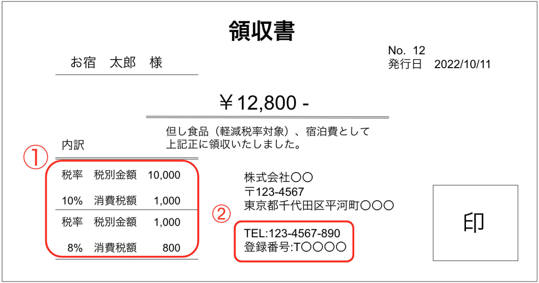 変更点は、①「税率ごとの消費税額」「適用税率」、➁「事業者の登録番号」の3点です。